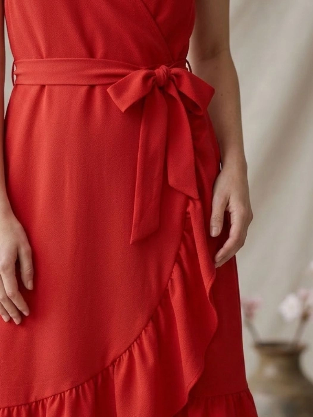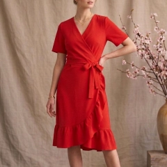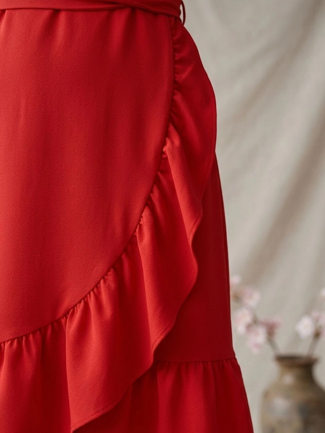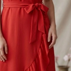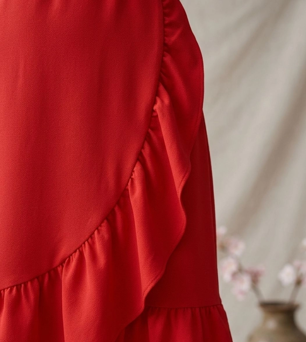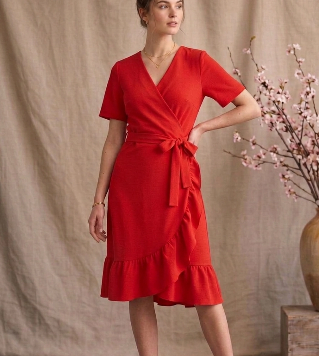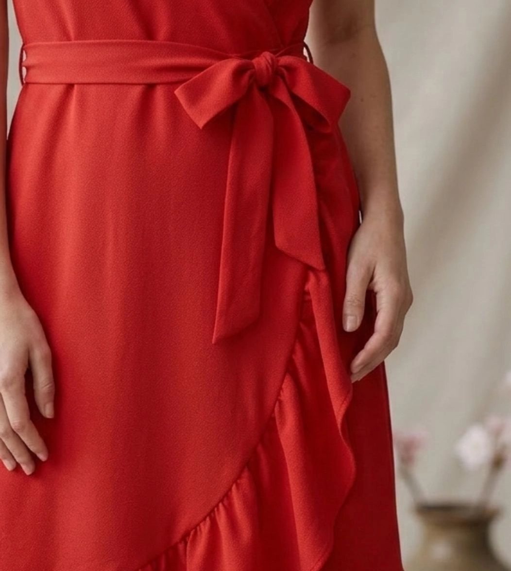 Pamplona è l'abito midi con scollo a V incrociato e balze della Capsule Collection Hanami SS26. Dotato di fascia in vita e caratterizzato da linee morbide che cadono dolcemente valorizzando la silhouette. Ideale per chi cerca un abito elegante ma comodo, leggero e dal carattere femminile.