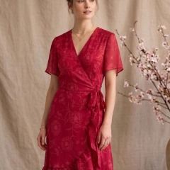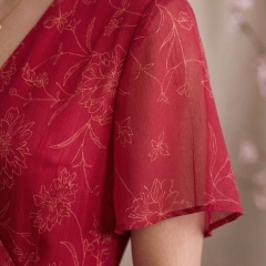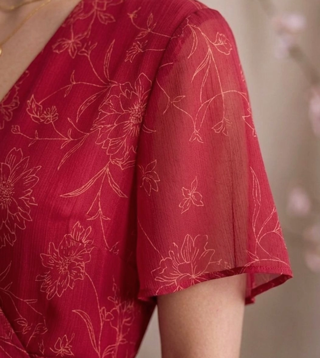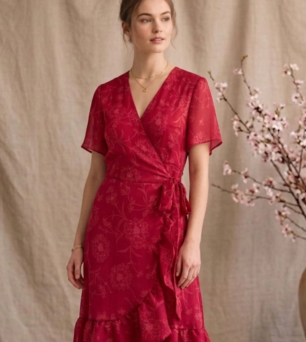 Pamplona è l'abito midi con scollo a V incrociato e balze della Capsule Collection Hanami SS26. Dotato di fascia in vita e caratterizzato da linee morbide che cadono dolcemente valorizzando la silhouette. Ideale per chi cerca un abito elegante ma comodo, leggero e dal carattere femminile.