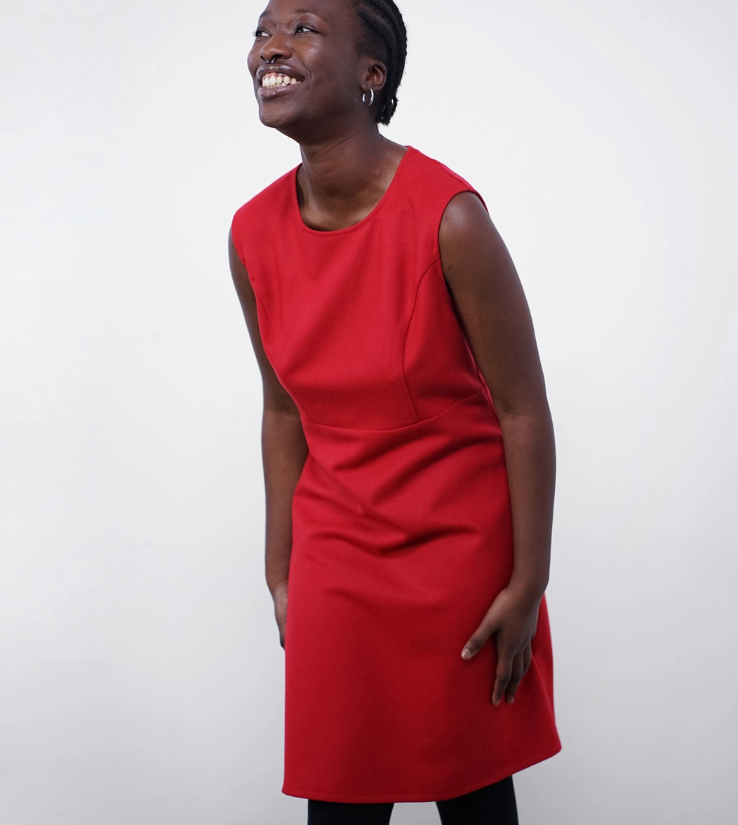 Abito dal taglio classico e senza tempo: COLLEGNO è lo smanicato  evergreen corto, lungo fino al ginocchio e dalla linea ad A. Scollo rotondo e pences sul davanti esaltano le forme ed evidenziano il punto vita, rendendo questo capo ideale per chi ama indossare la ricercatezza della semplicità in ogni occasione.