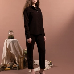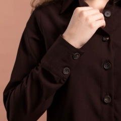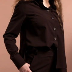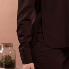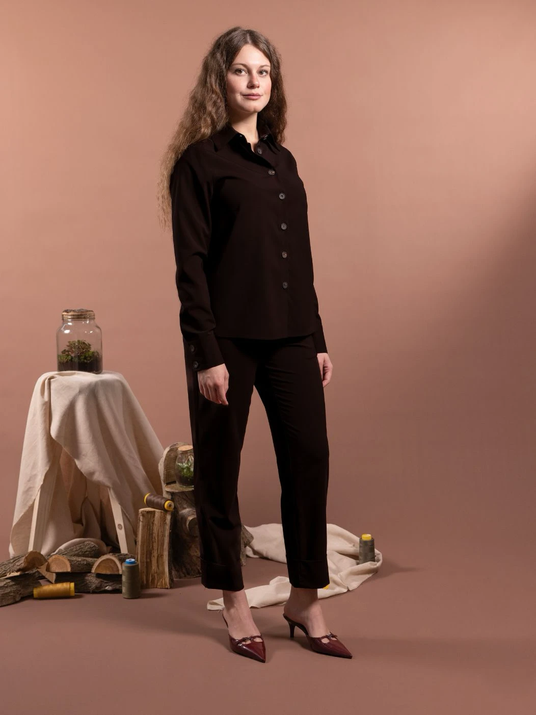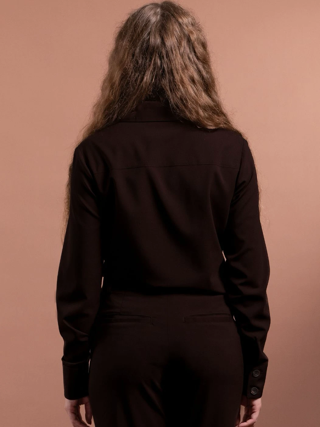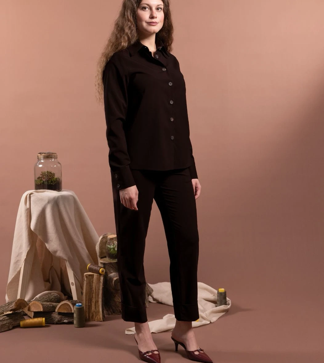 Rachel è la camicia in frescolana nei colori cioccolato e moka dal taglio dritto e pulito. Con colletto classico, abbottonatura frontale, fondo e polsini rifiniti con doppio bottone. I caratteristici spacchi laterali la rendono versatile, perfetta da portare dentro o fuori dai pantaloni. Vestibilità e spalline regolari per un capo semplice ma raffinato in perfetto abbinamento con i pantaloni Dena.
