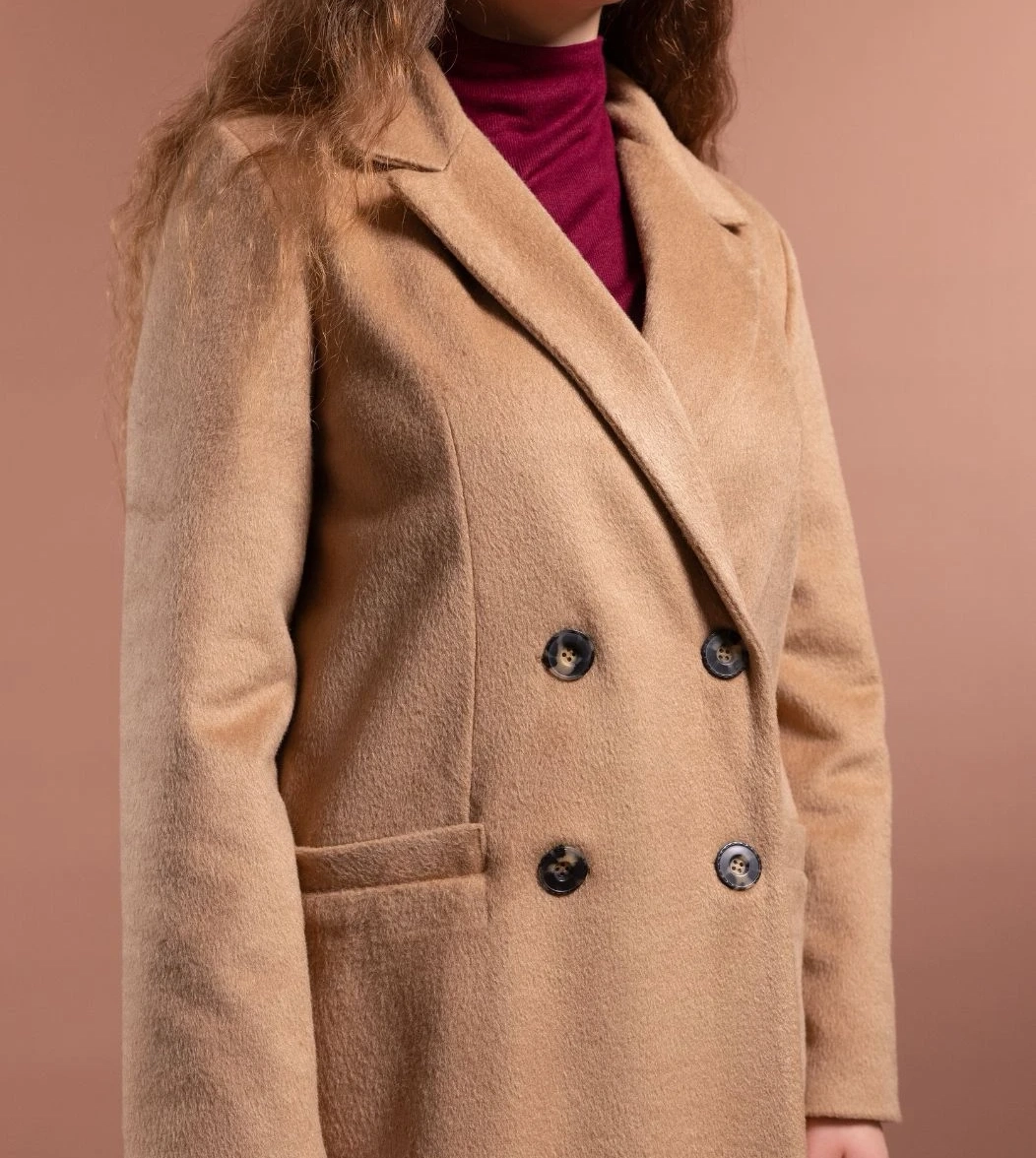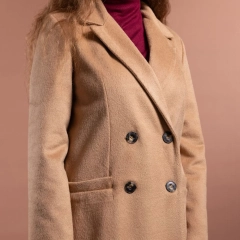 Realizzato in lana cardata con pelo a media lunghezza, è foderato internamente. Il colletto a revers e le tasche frontali a filetto donano un tocco elegante.