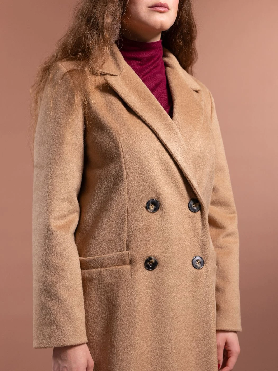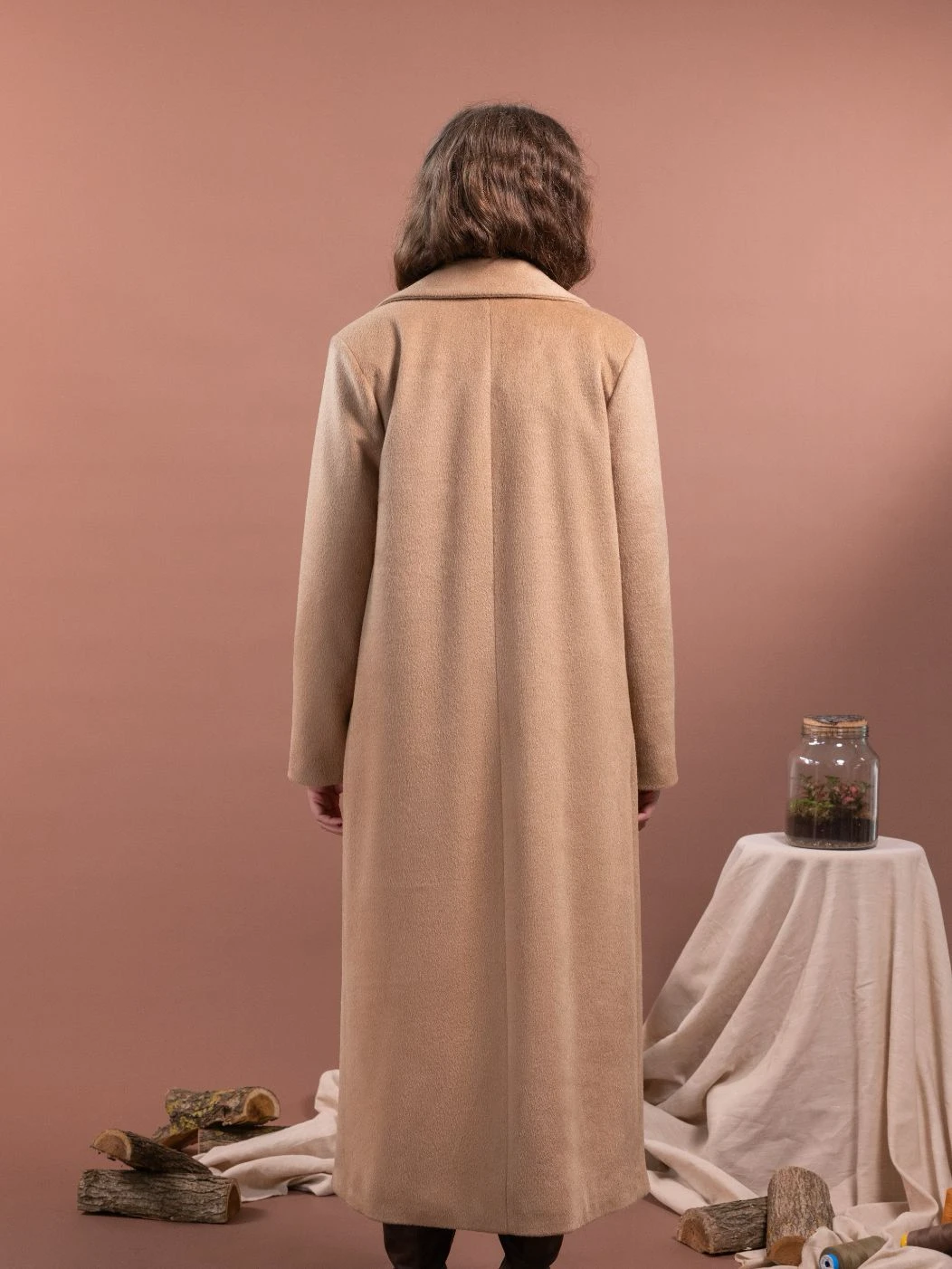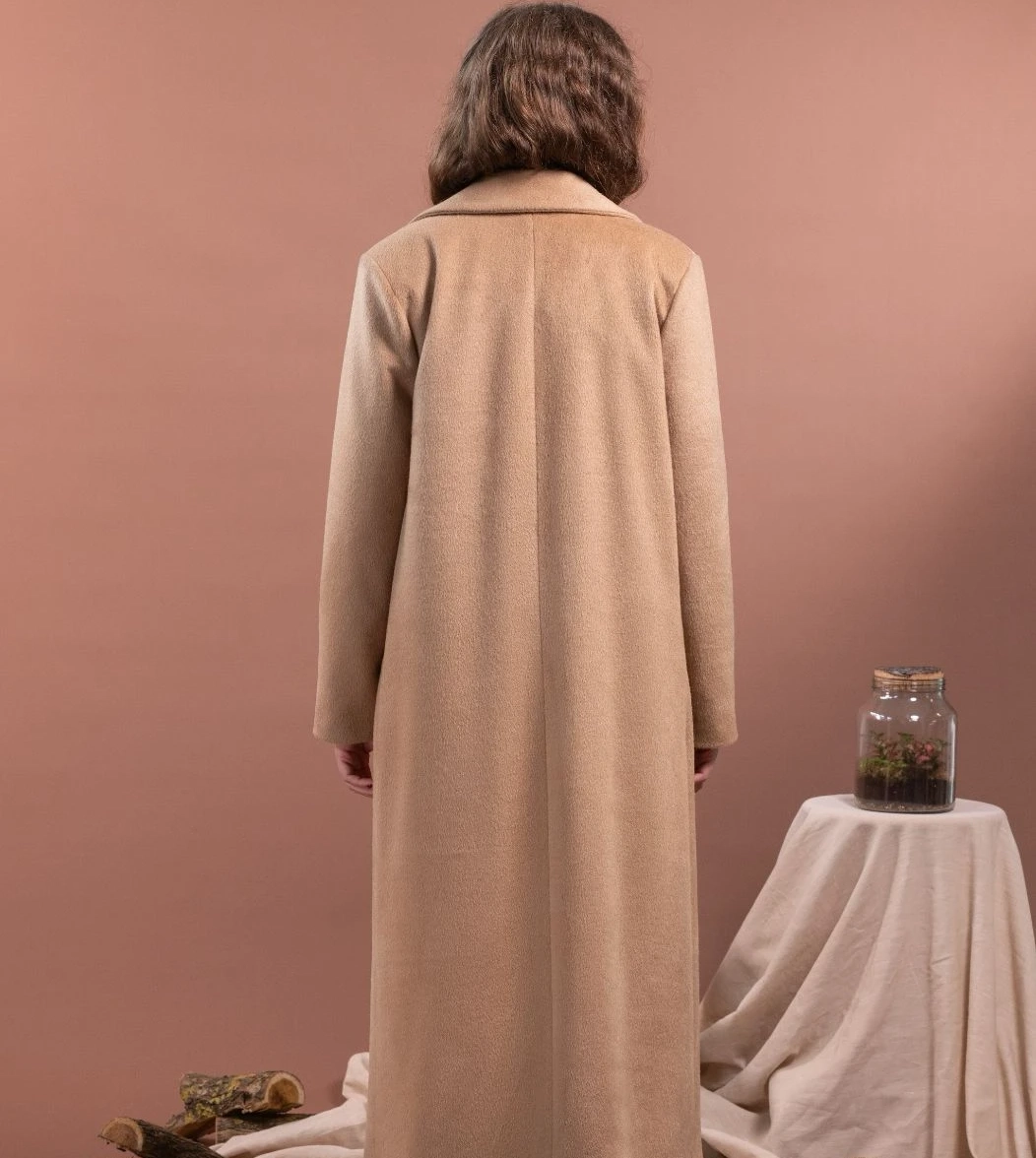 Ortisei è il maxi cappotto doppiopetto con chiusura a quattro bottoni, taglio lungo e lineare e vestibilità regular.
