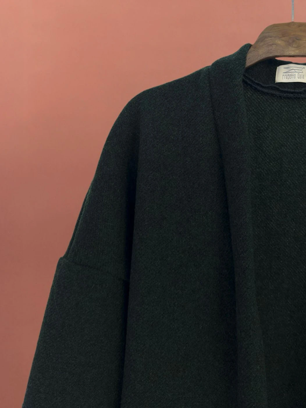 Cancun è il cardigan in lana lungo, disponibile con o senza frange sul fondo e con bordatura rifinita. Caratterizzato da spalla morbida, vestibilità regular, senza tasche e disponibile in sei fantasie.