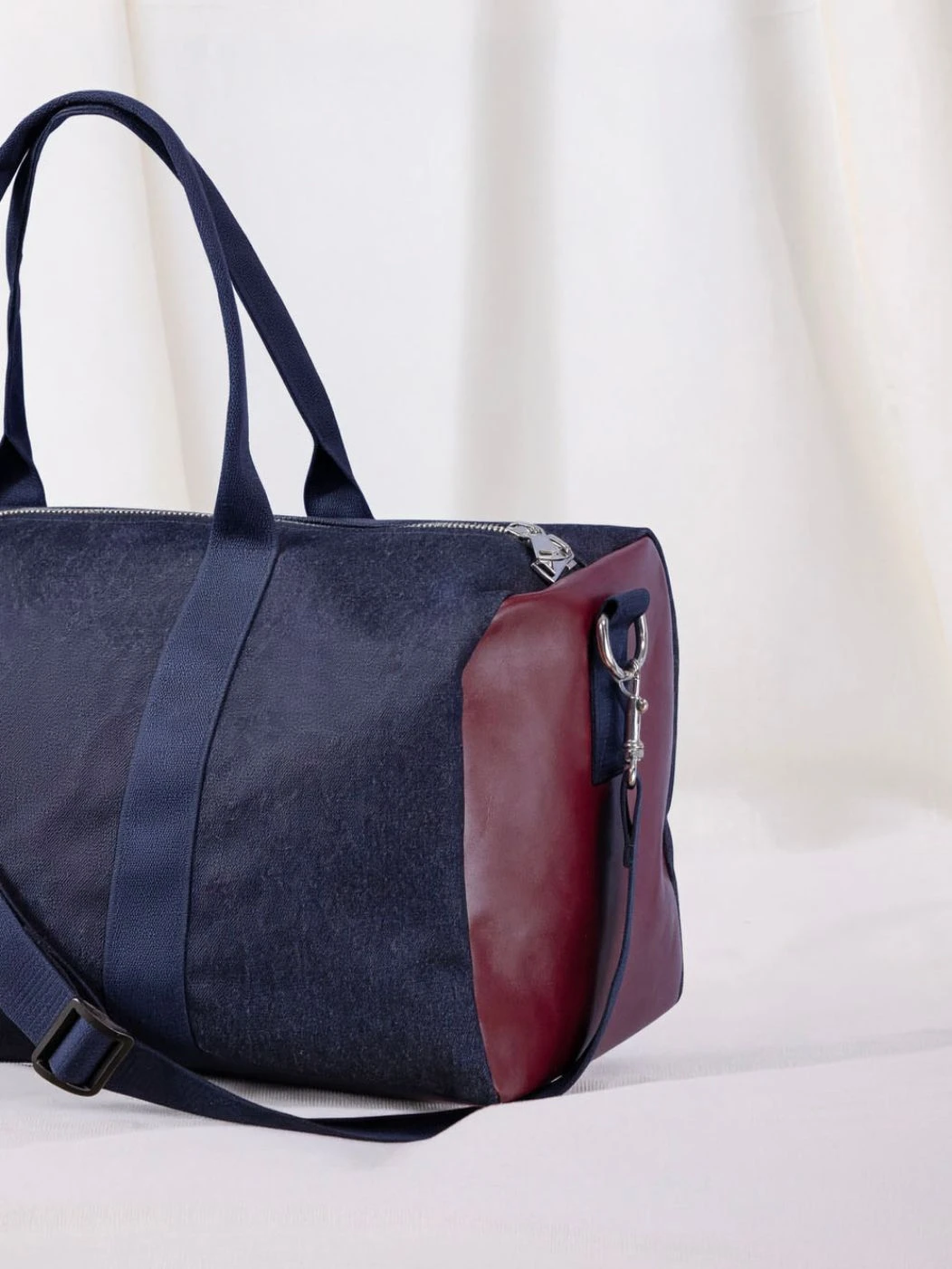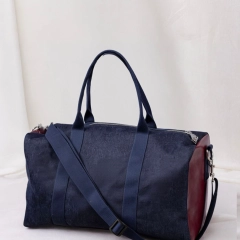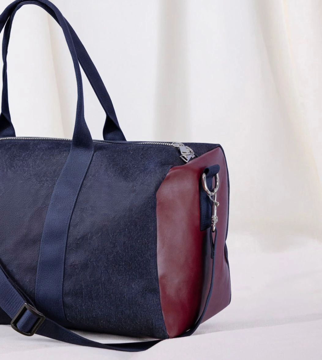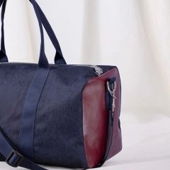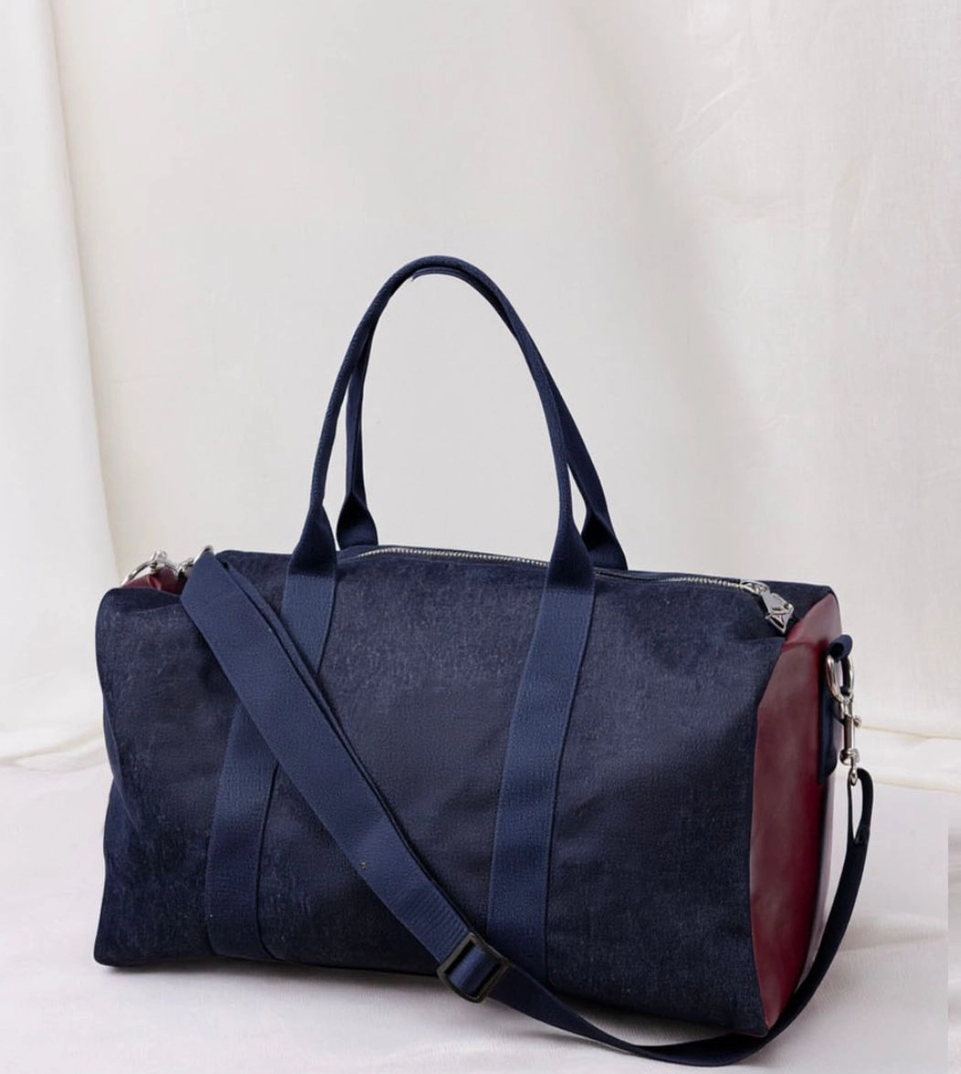New York è il borsone da viaggio realizzato in tessuto esterno in denim e in fantasia blu con inserti laterali in vera pelle. I manici e la tracolla regolabile con passanti garantiscono resistenza e facilità di trasporto, in tinta con il tessuto esterno. La chiusura è con zip in metallo e i moschettoni laterali in acciaio. Internamente è foderato e dotato di una piccola tasca sul lato. Ideale come travel bag o come idea regalo.