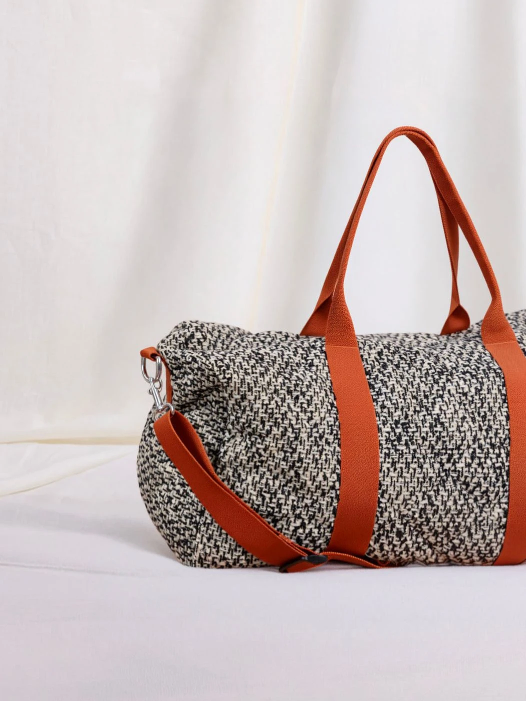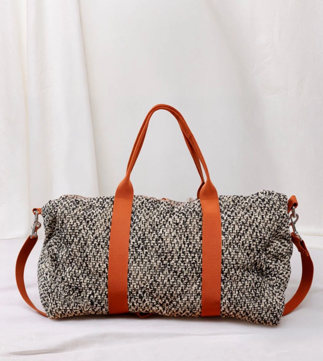 Seattle è il borsone da viaggio in morbido tessuto di lana trapuntato all’esterno e all’interno con fondo in vera pelle. I manici e la tracolla regolabile con passanti garantiscono resistenza e facilità di trasporto, in tinta o in contrasto con il tessuto esterno. La chiusura è con zip in metallo e i moschettoni laterali in acciaio. Internamente è foderato e dotato di una piccola tasca sul lato. Ideale come travel bag o come idea regalo.