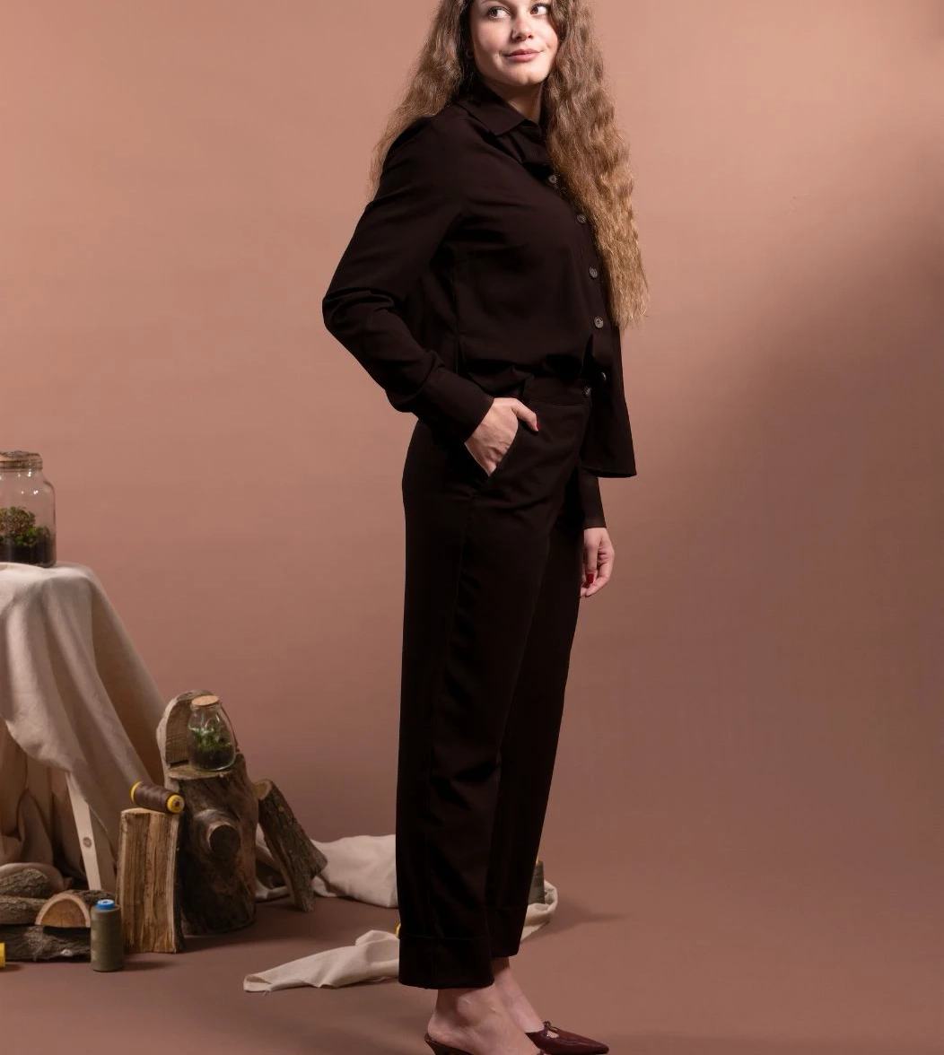 Abbinato alla camicia Rachel in fresco lana per un look invernale essenziale e avvolgente.