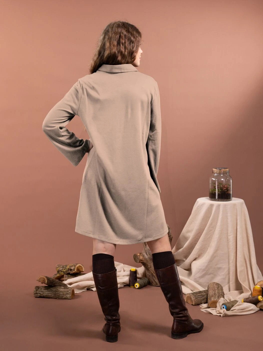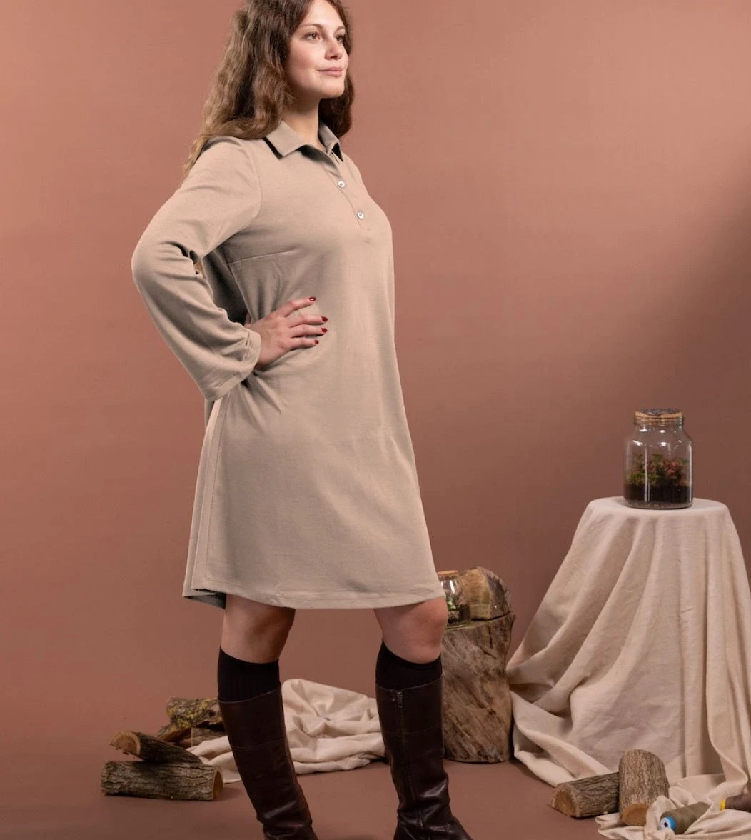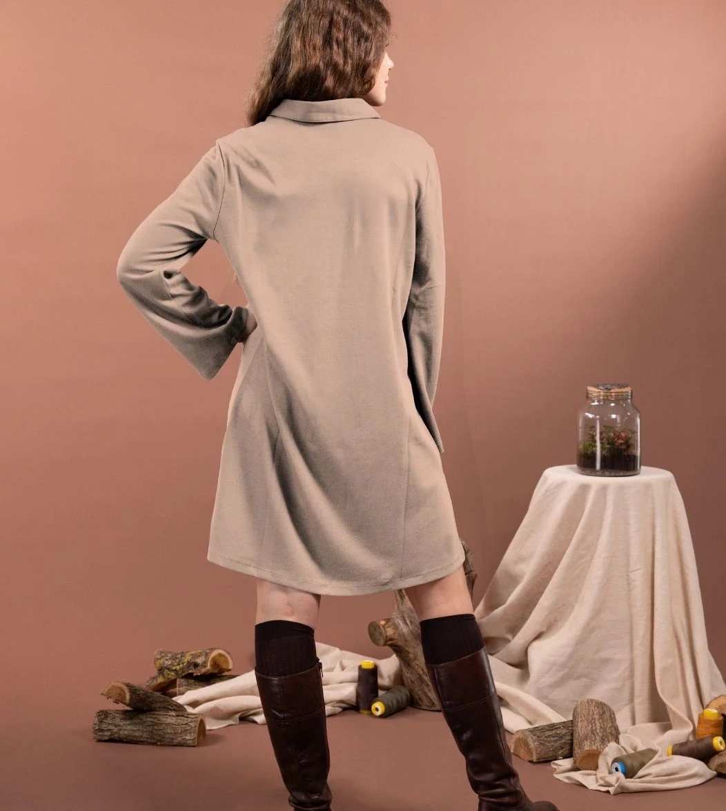 Abito midi in cotone con colletto classico, chiusura frontale con bottoncini e linea dritta che scivola morbida lungo i fianchi. Le maniche lunghe, leggermente svasate al polso, donano un tocco di eleganza rilassata. Le pinces sul davanti valorizzano la silhouette senza costringerla. Proposto in tre varianti, morbido e confortevole, OXFORD ti avvolge come in un abbraccio.
