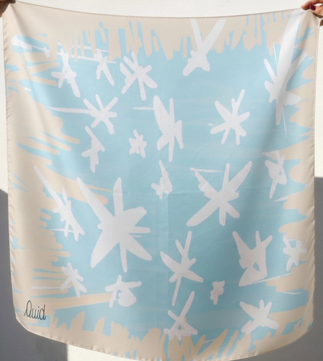 Il foulard iconico 2024 è un racconto su seta di sogni, aspirazioni e desideri delle colleghe e dei colleghi di Quid: gli elementi grafici protagonisti delle quattro varianti colore traggono ispirazione da disegni, dipinti e creazioni realizzati durante il Team Building aziendale delle colleghe e dei colleghi di Quid.
