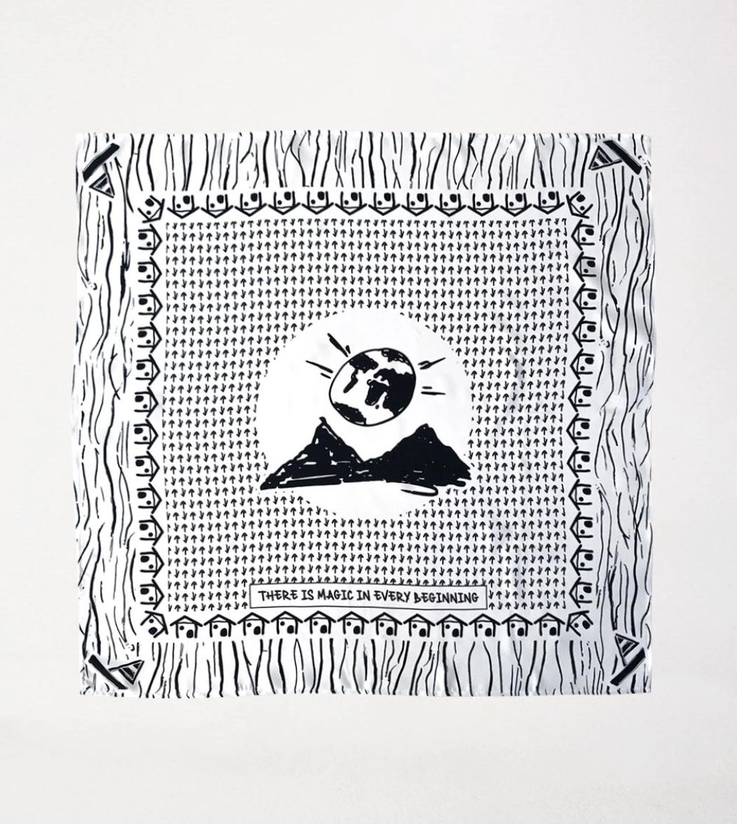 La trama dei foulard Worldplaces è popolata da simboli, immagini e parole che nascono in Quid: un messaggio rivoluzionario di gentilezza, un invito a dimenticarsi una finestra aperta perché la magia dei nuovi inizi possa sempre sorprenderci.