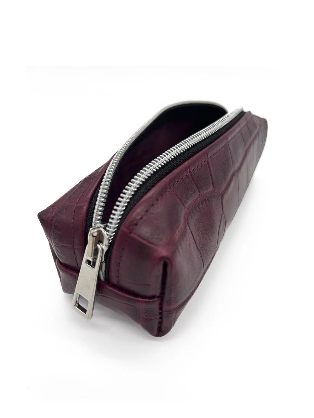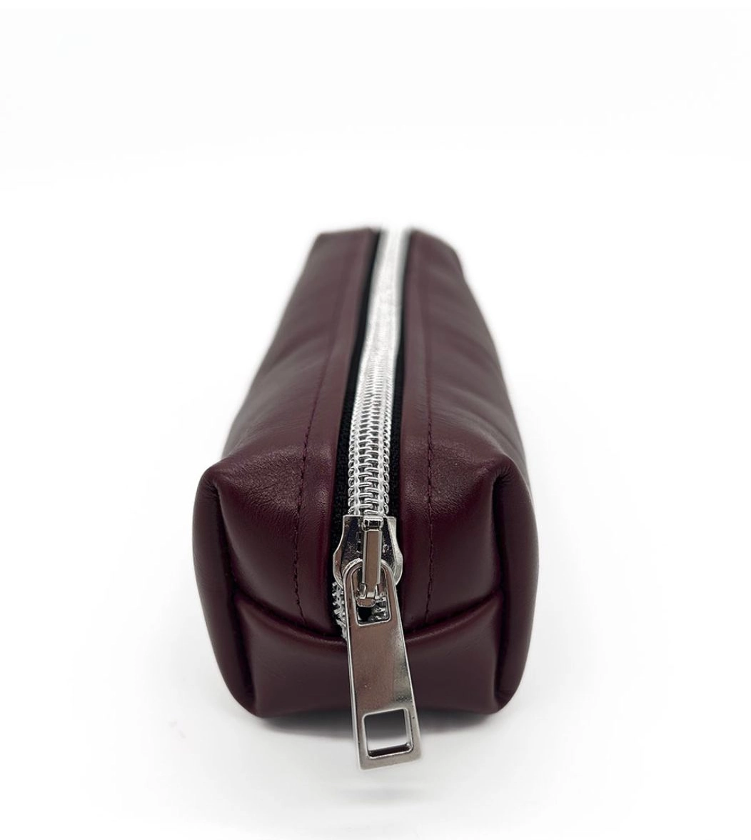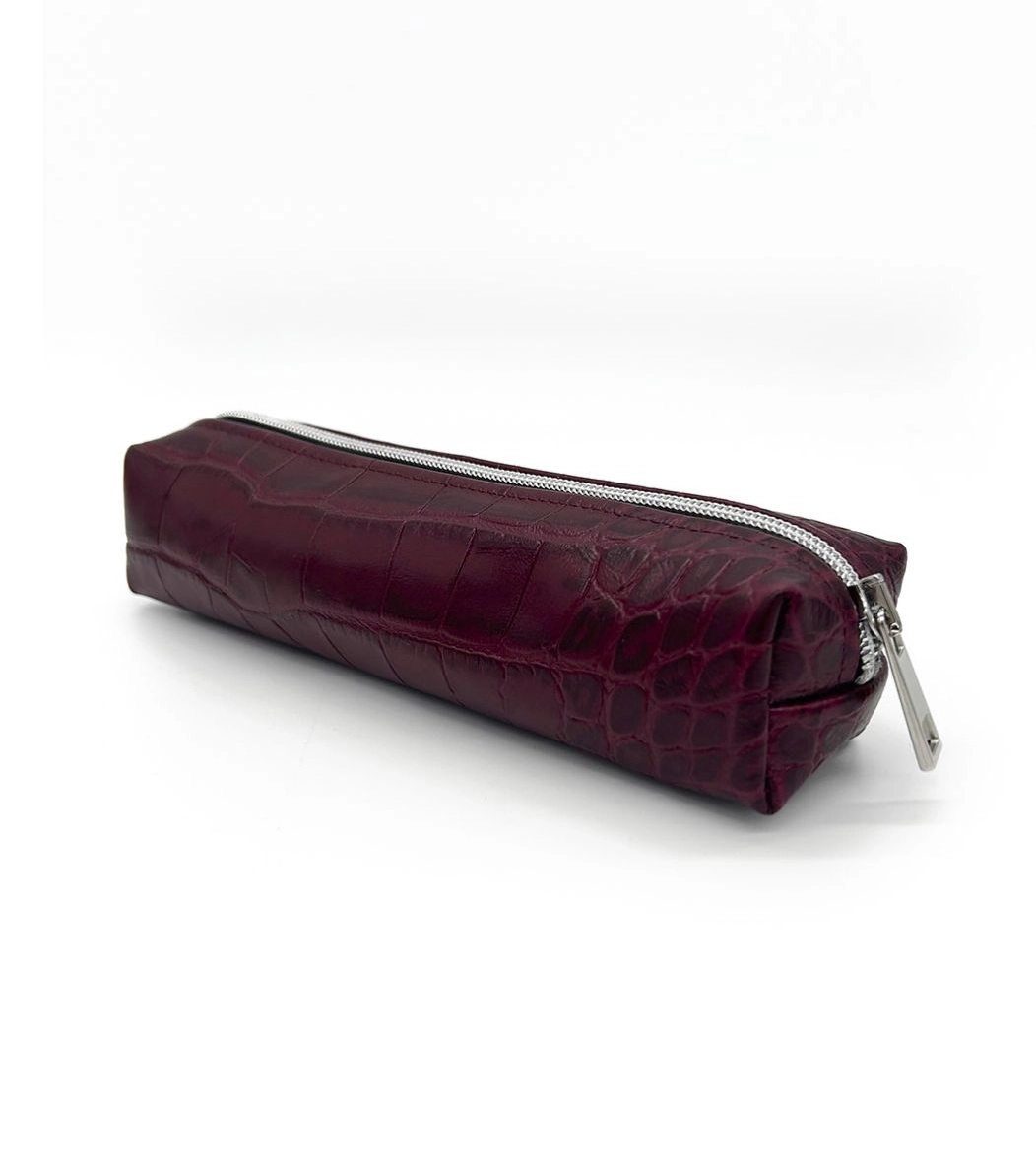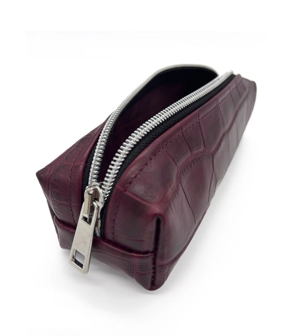 Umberto è l'astuccio in 100% vera pelle della Capsule Accessori FW 24/25. Modello rigido di manifattura Ethically Made in Italy con chiusura a zip, disponibile in tinta unita e in fantasia astratta animalier.