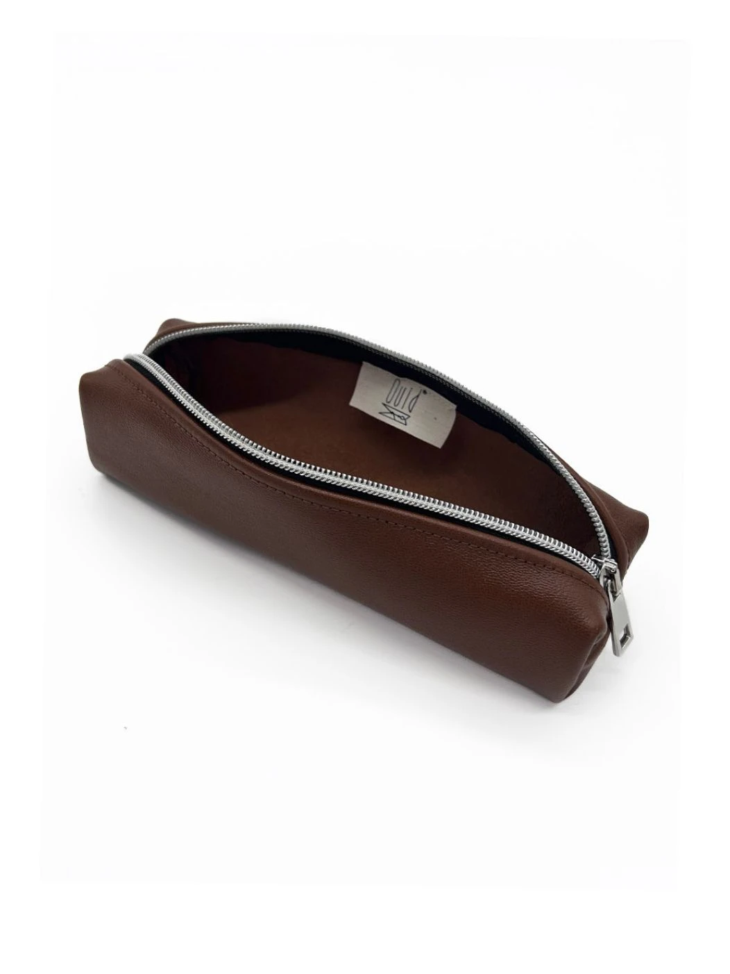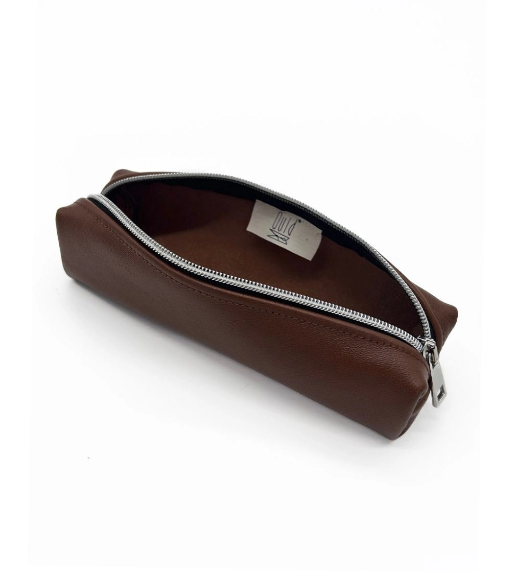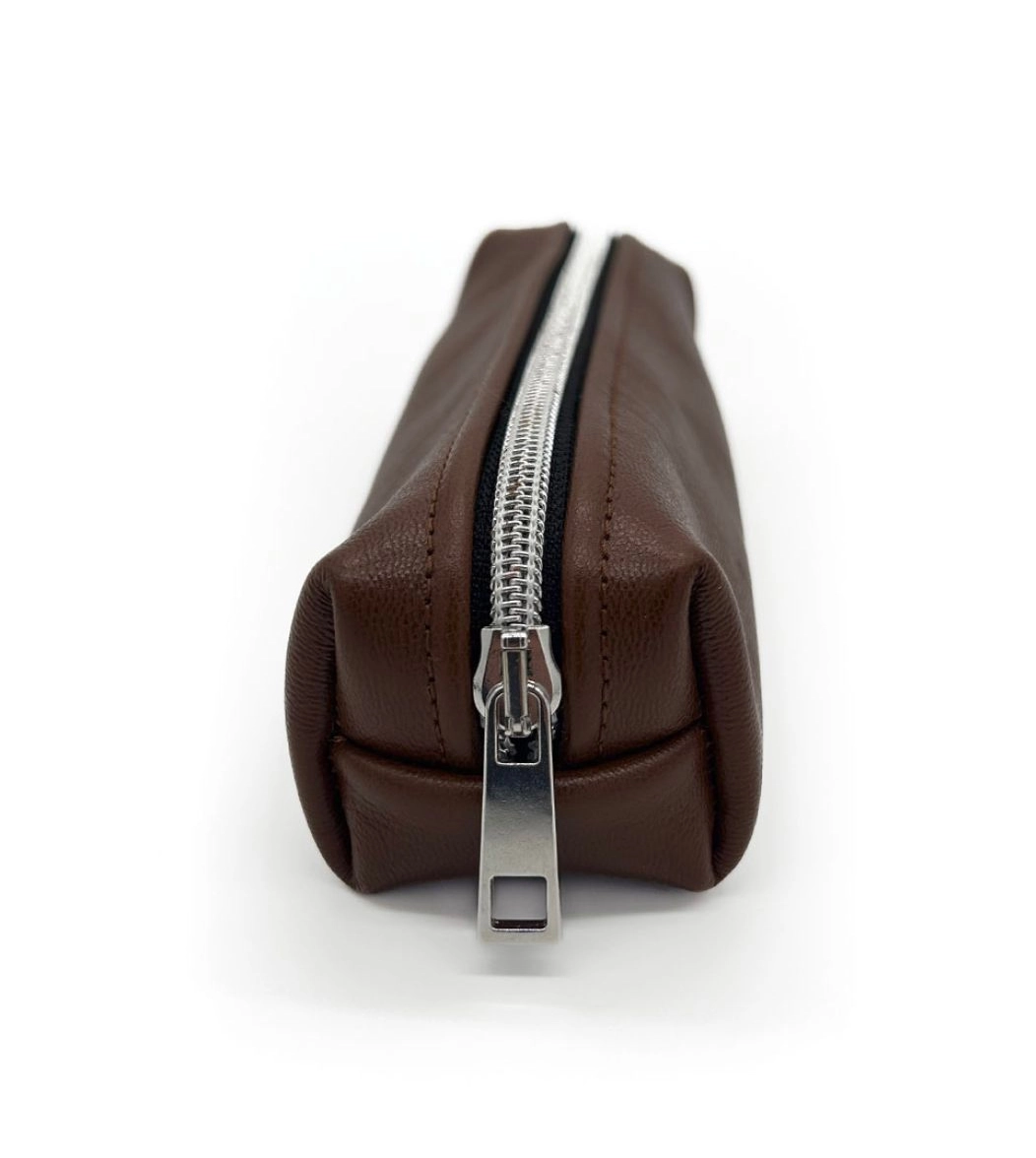 Umberto è l'astuccio in 100% vera pelle della Capsule Accessori FW 24/25. Modello rigido di manifattura Ethically Made in Italy con chiusura a zip, disponibile in tinta unita e in fantasia astratta animalier.
