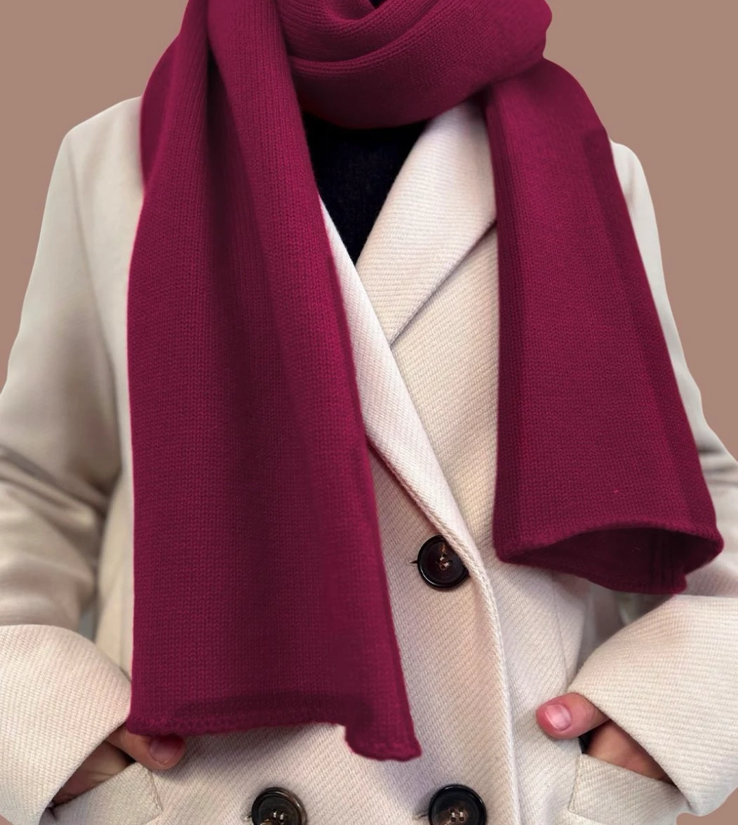 Fin è la sciarpa in morbido filato di lana e cashmere unisex, in taglia unica. Ha un taglio lungo con bordini rifiniti in punto maglia. Offre il massimo comfort avvolgendo in un abbraccio caldo e morbido, perfetta come idea regalo o da abbinare al berretto beanie Davi.