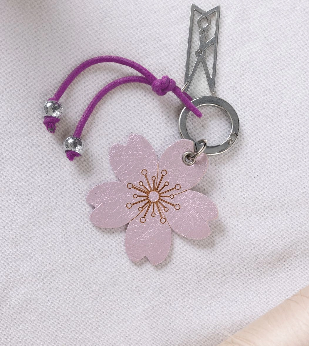 Portachiavi piatti in pelle a forma di cuore e fiore, anello con leva apribile. Disponibili nelle varianti del rosa e in colori cangianti. Ad impreziosire l'accessorio ci sono il cordino cerato con elementi in metallo e il charm con la molletta di Progetto Quid. Più di un'idea regalo, un invito a riconoscere la capacità di tornare a fiorire e generare cambiamento.