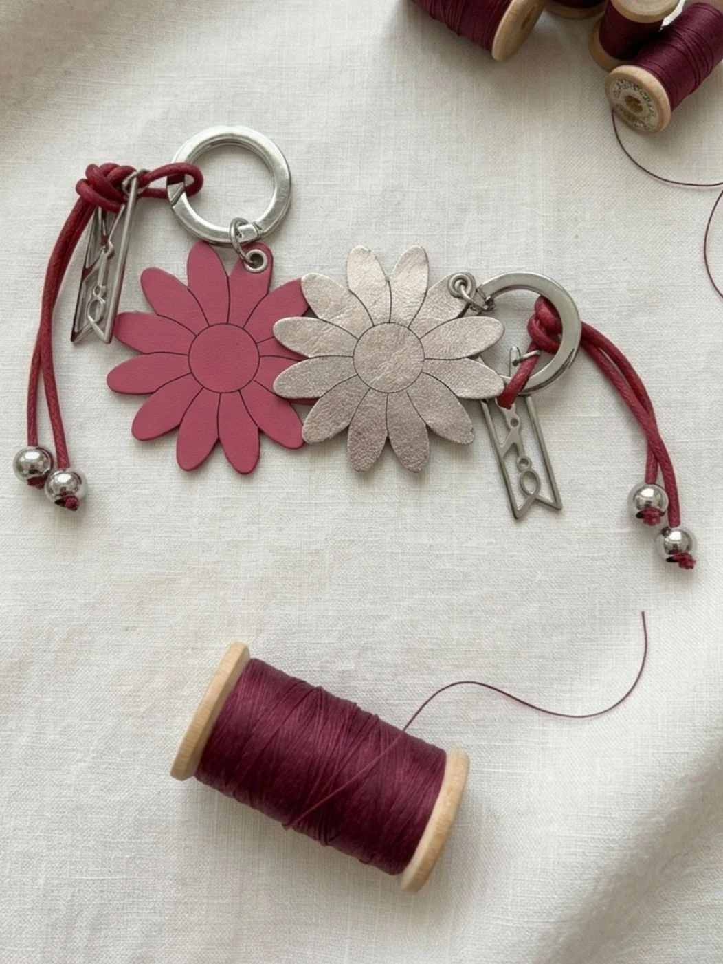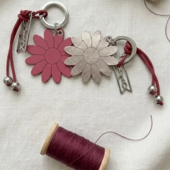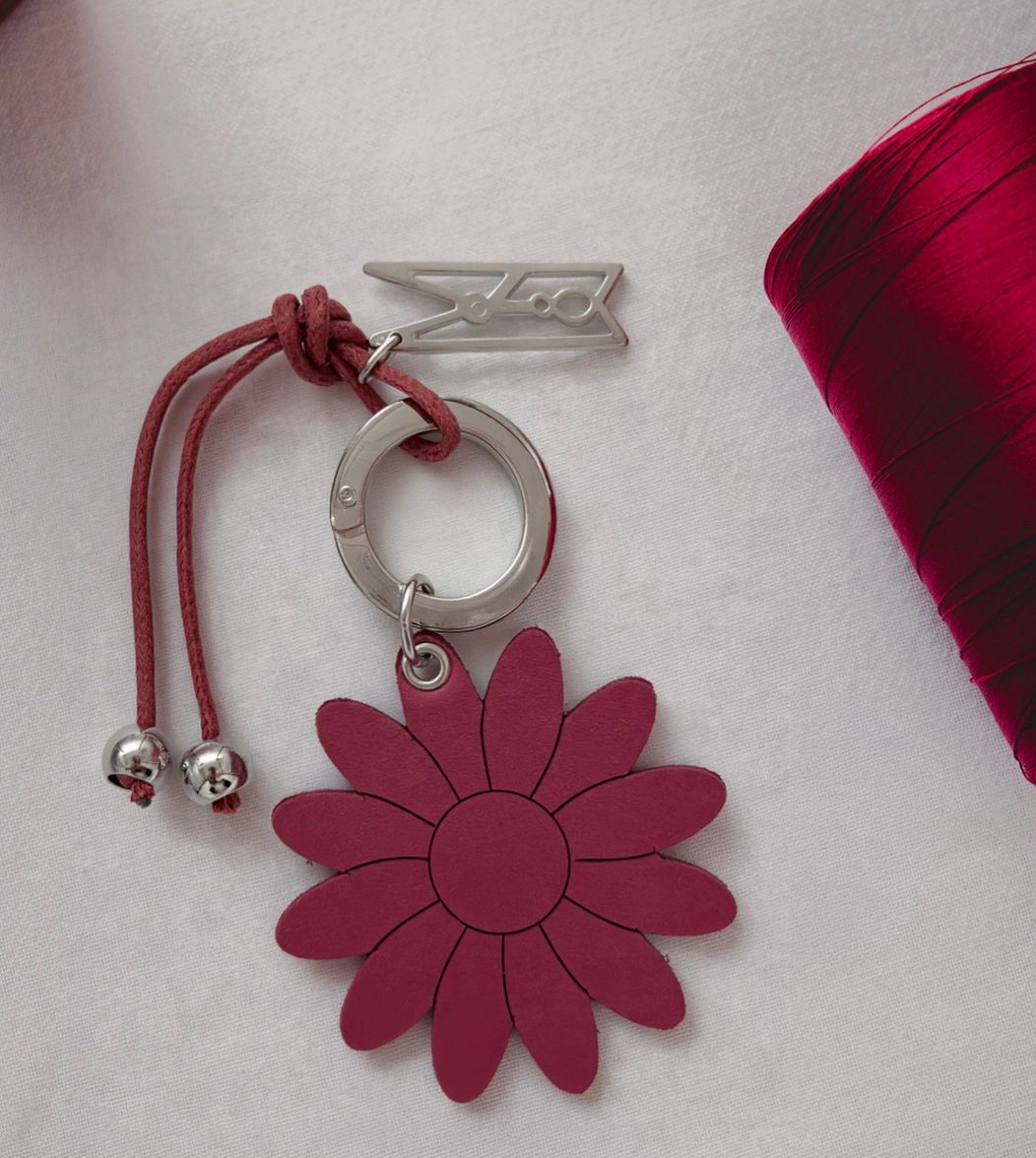 Portachiavi piatti in pelle a forma di cuore e fiore, anello con leva apribile. Disponibili nelle varianti del rosa e in colori cangianti. Ad impreziosire l'accessorio ci sono il cordino cerato con elementi in metallo e il charm con la molletta di Progetto Quid. Più di un'idea regalo, un invito a riconoscere la capacità di tornare a fiorire e generare cambiamento.