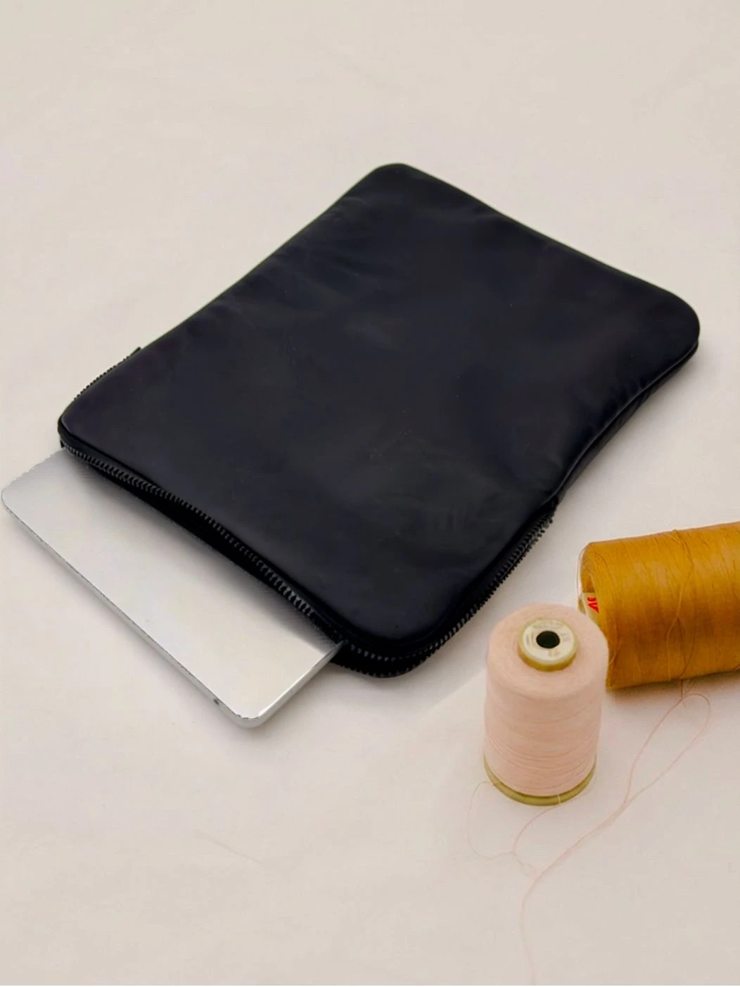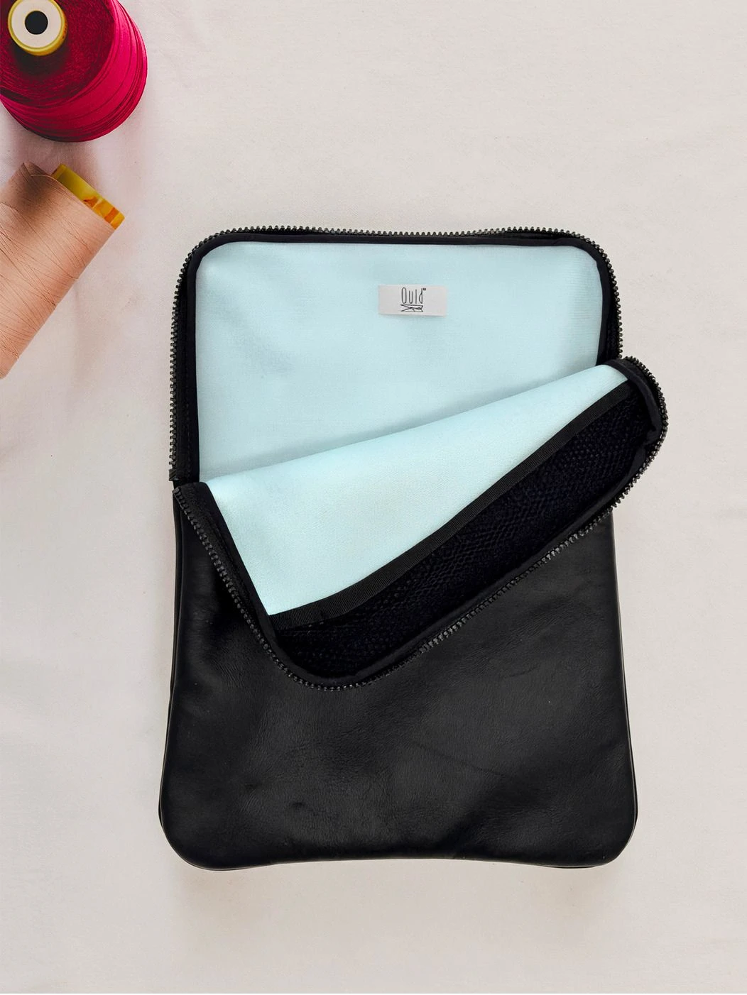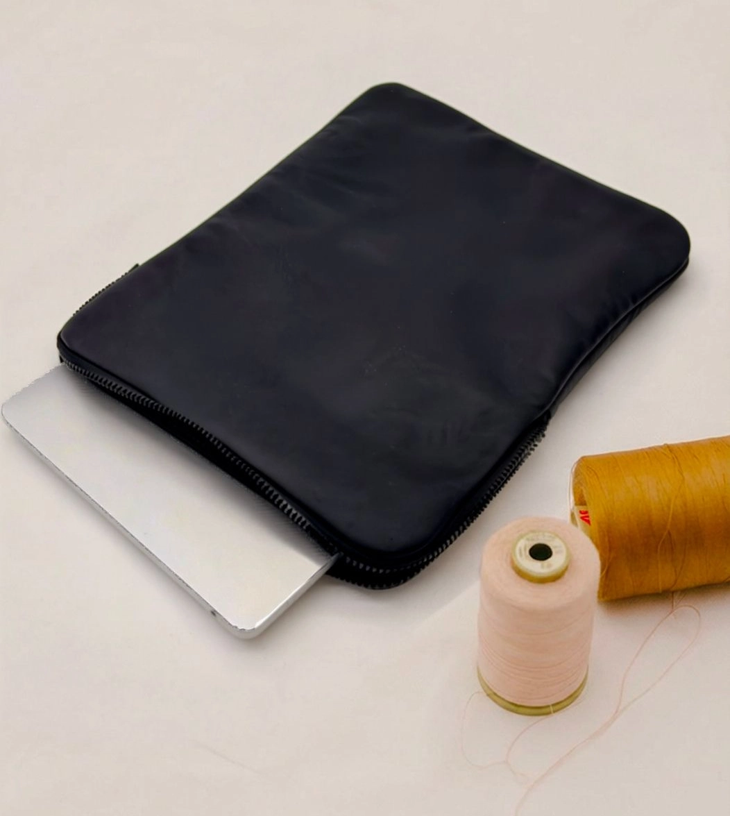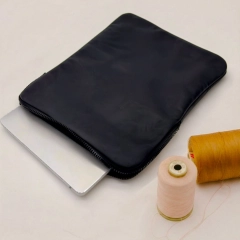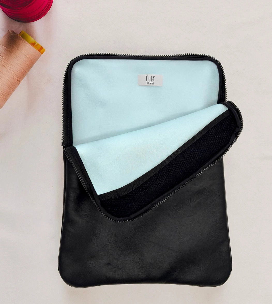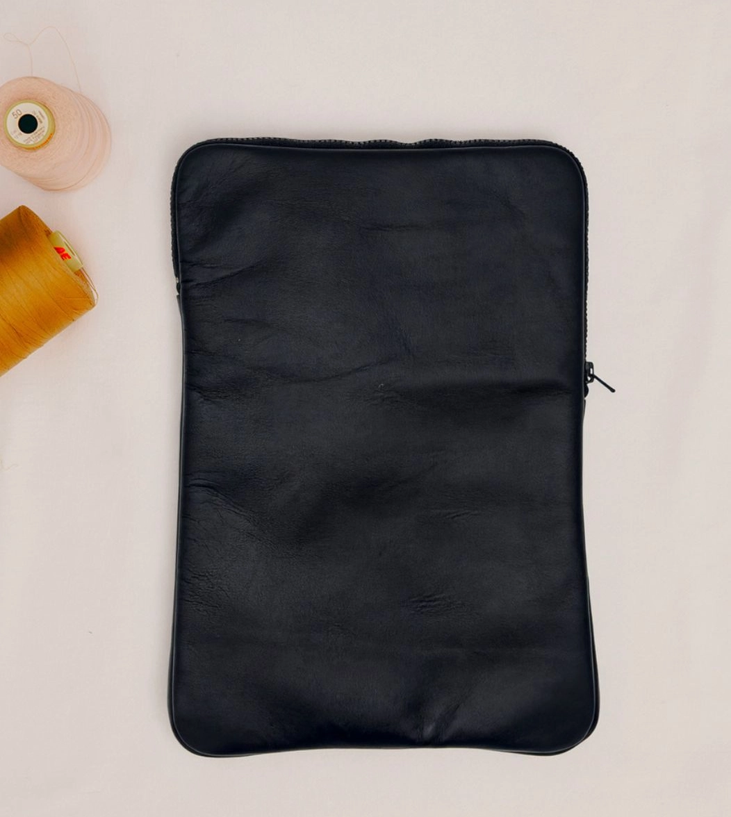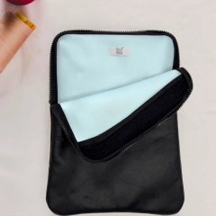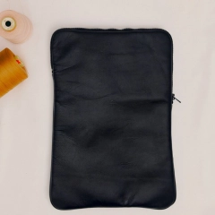 Custodia porta PC bordata in pelle disponibile in tinta unita, foderata all’interno con neoprene. Dotata di chiusura classica con cerniera e retina interna per mantenere saldo il portatile.