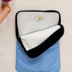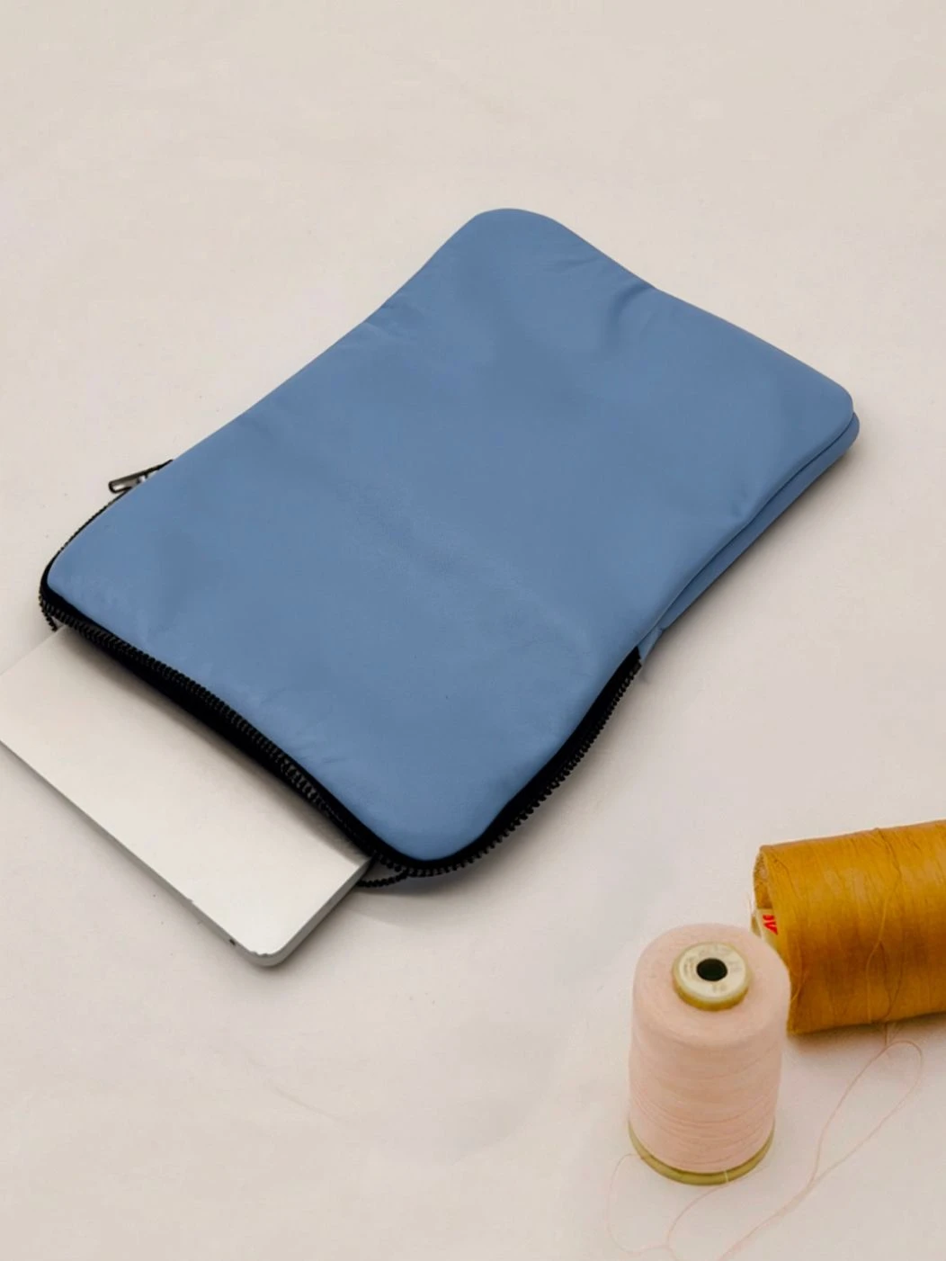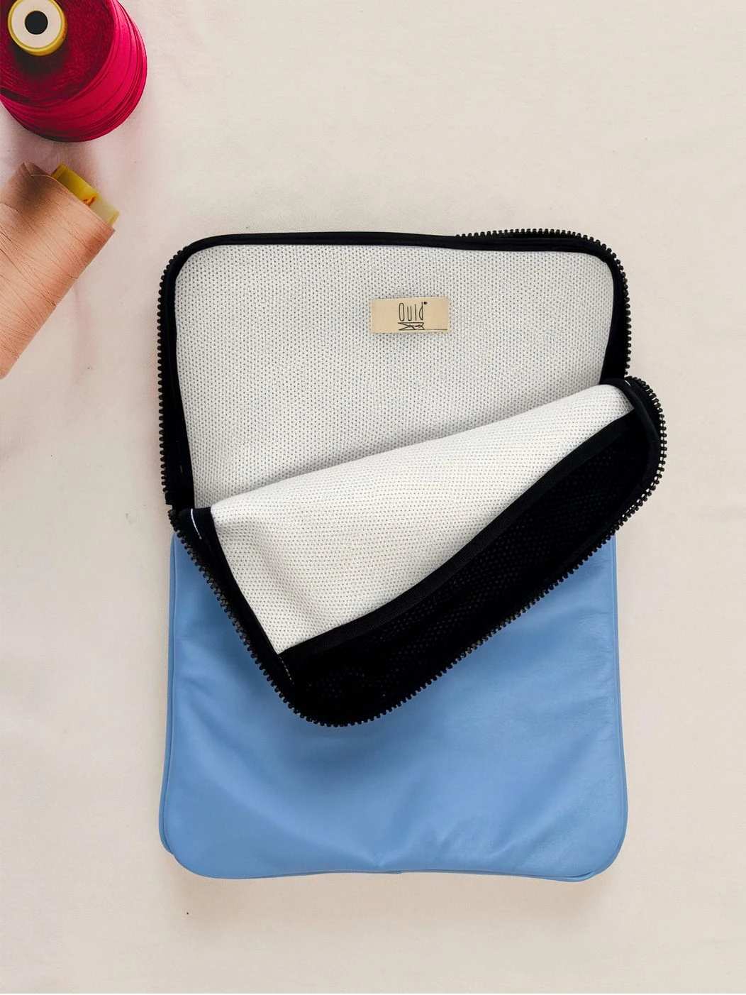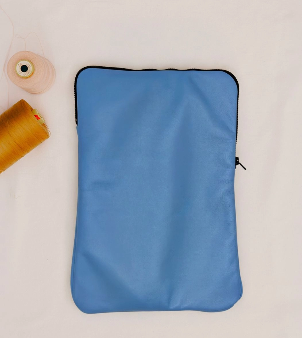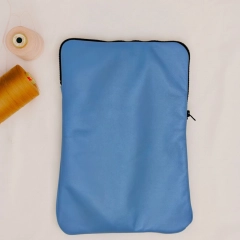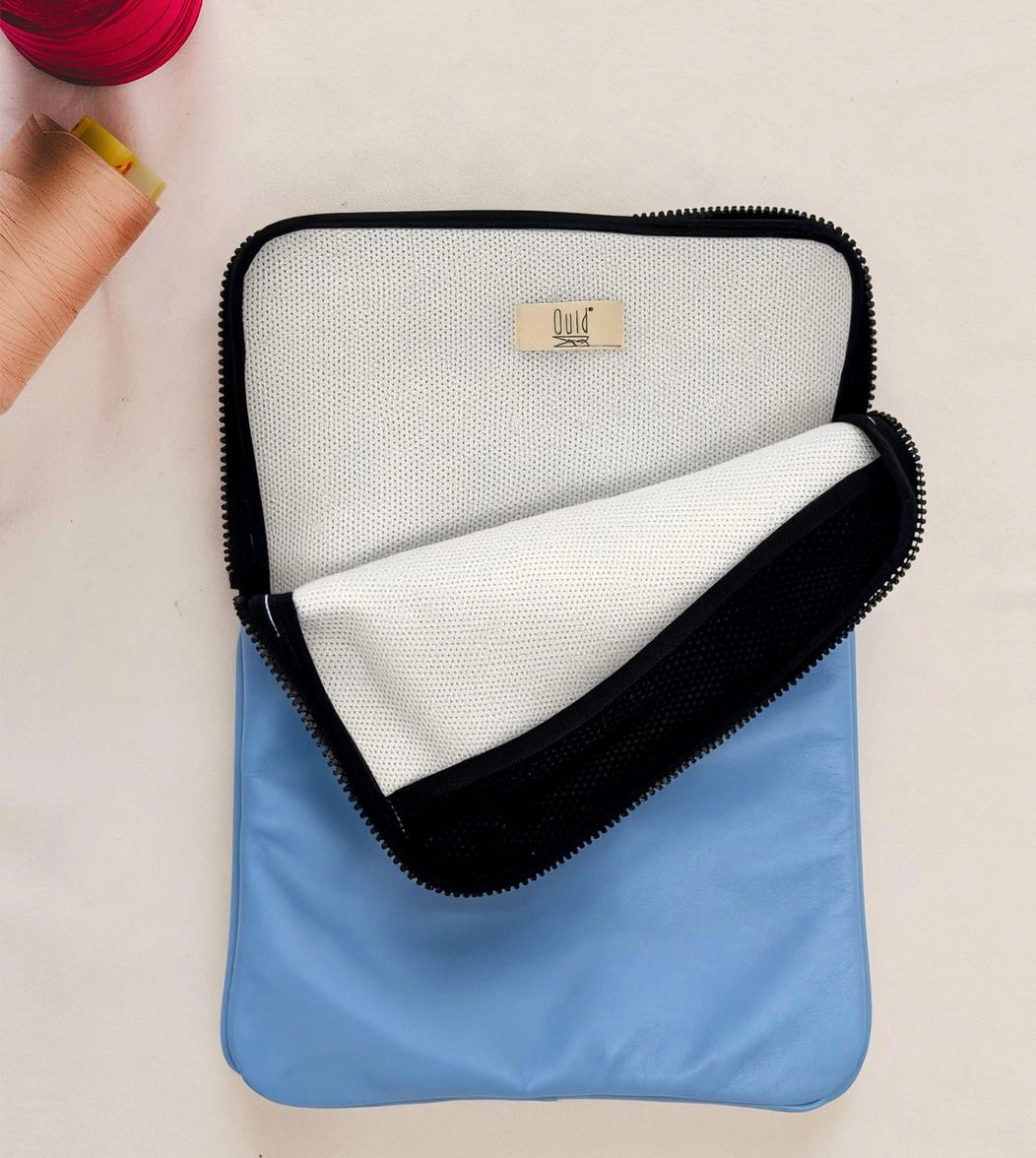 Custodia porta PC bordata in pelle disponibile in tinta unita, foderata all’interno con neoprene. Dotata di chiusura classica con cerniera e retina interna per mantenere saldo il portatile.