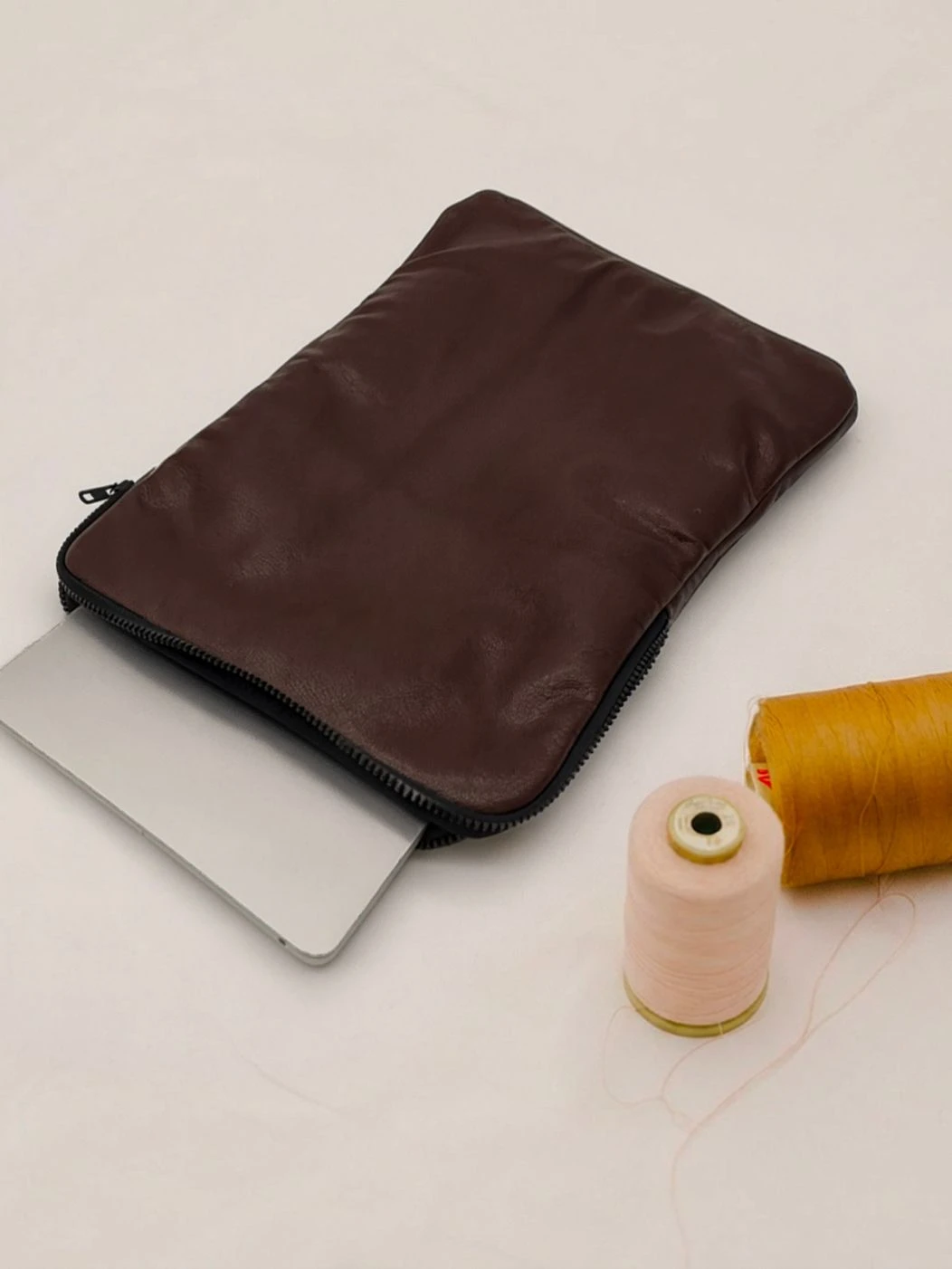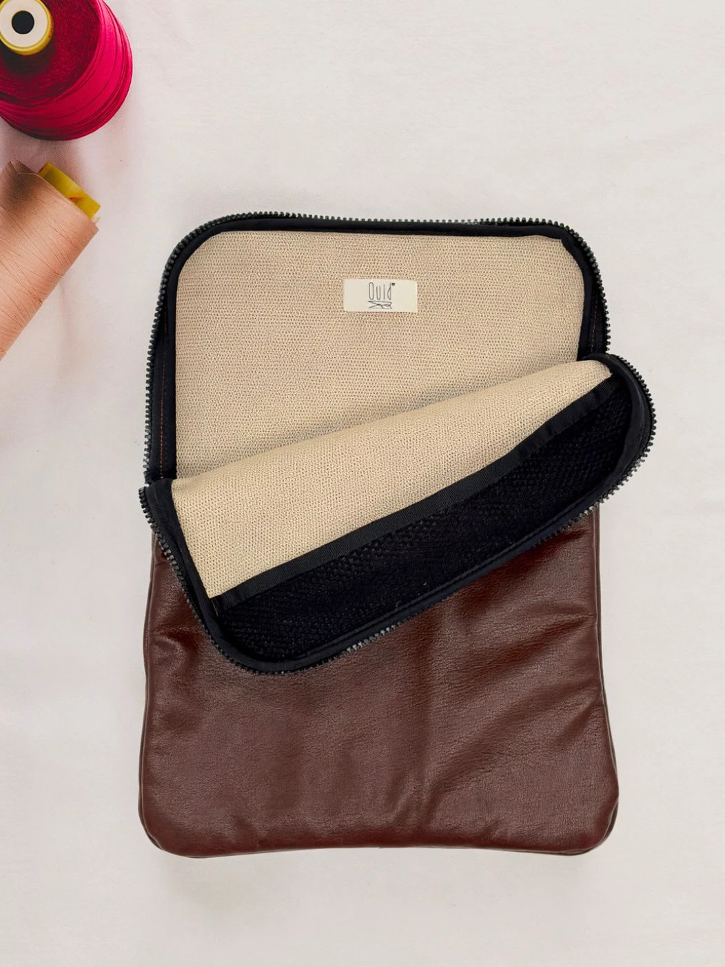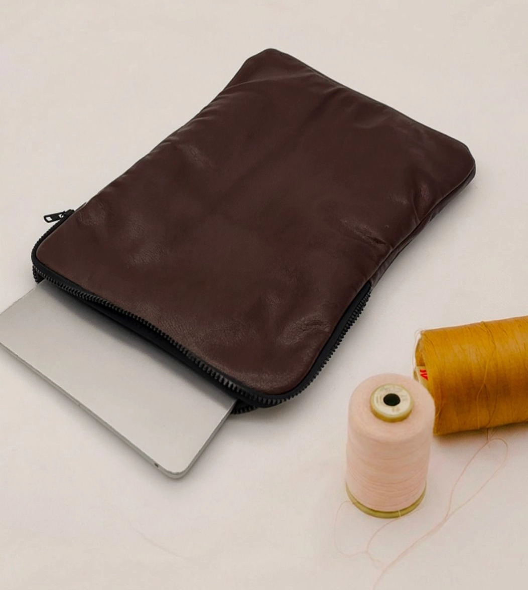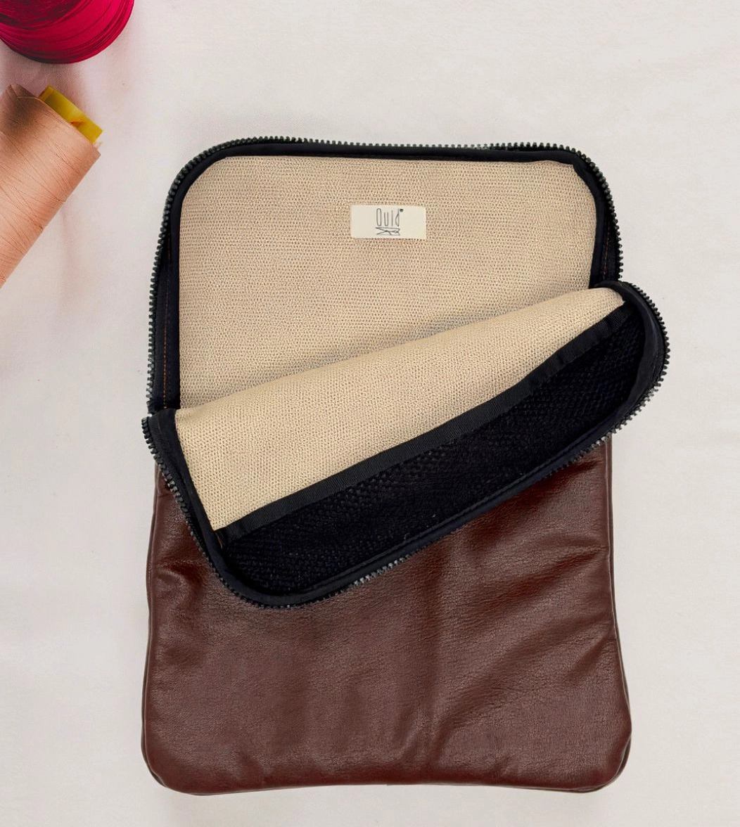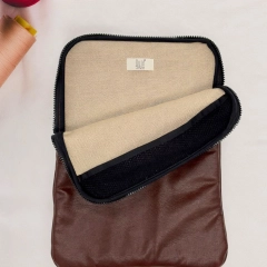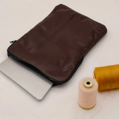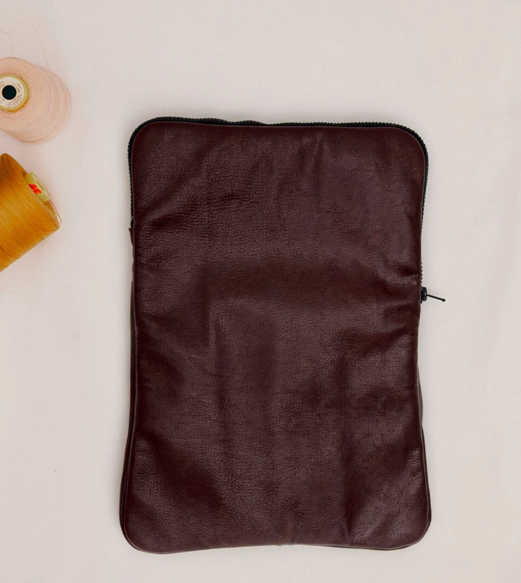 Custodia porta PC bordata in pelle disponibile in tinta unita, foderata all’interno con neoprene. Dotata di chiusura classica con cerniera e retina interna per mantenere saldo il portatile.