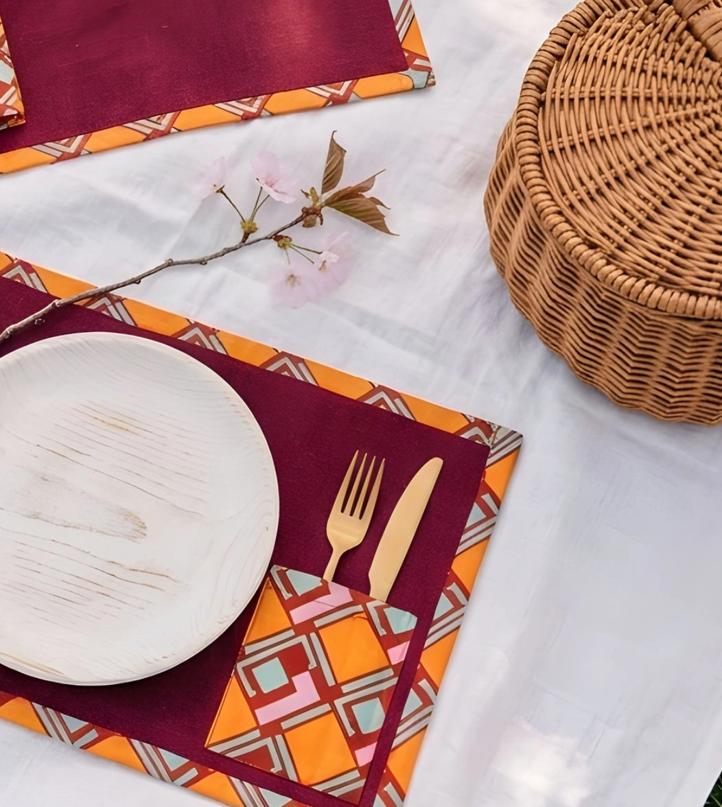 Realizzate in resistente tessuto pregiato di eccedenza con inserti a contrasto in fantasia: bordature e tasca. Dotate di tasche laterali per posate, toni brillanti e delicati apparecchiano la tavola donando colore e armonia, per condividere insieme momenti preziosi. Abbinale ai runner coordinati Swiss.