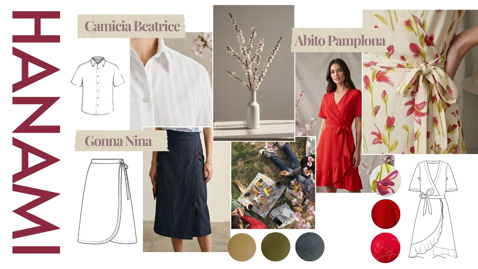 Hanami è una collezione capsula costruita su pochi pezzi essenziali, una selezione di capi dalle linee basiche e minimali, senza rigidità e pensati per accompagnare la donna contemporanea con eleganza.