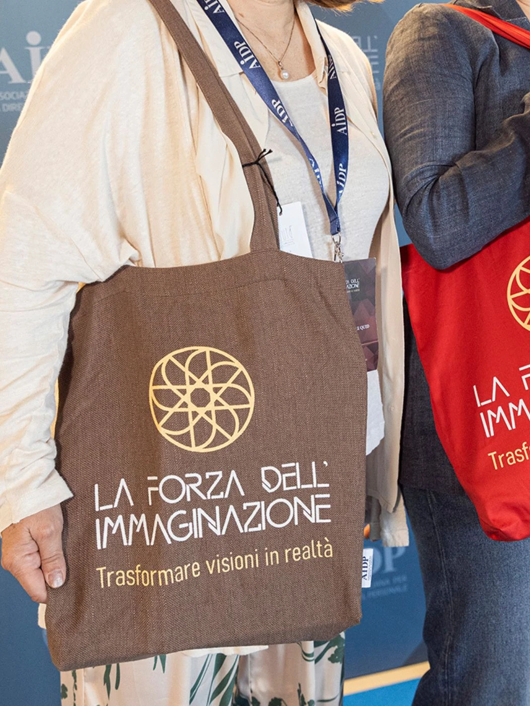 Le nostre proposte di merchandising Ethically Made in Italy includono shopping bag e tote bag per eventi, realizzate in tessuto o cotone recuperato, con logo stampato o ricamato. I modelli spaziano dal classico design a shopping bag fino a versioni più elaborate con tasche, creando modelli ibridi che uniscono la funzionalità di una tote bag a quella di una sacca.