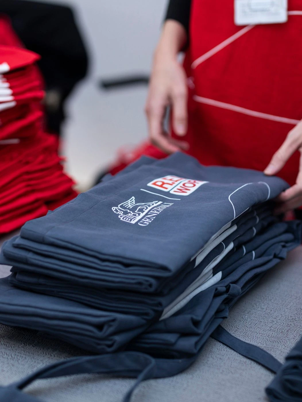 Utilizziamo tessuti recuperati per creare capi etici, sostenibili e completamente personalizzabili. È possibile scegliere dettagli, rifiniture, cuciture, stampa e posizione del logo, per un capo unico che unisce responsabilità sociale e ambientale.